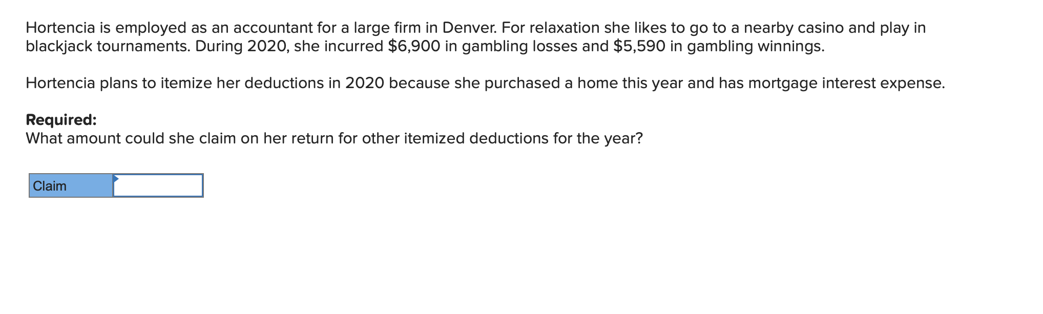 Solved Hortencia Is Employed As An Accountant For A Large Chegg Com